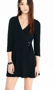 Black belted wrap dress. Size fit details. Made from an organic cotton mix this belted wrap dress is cut for cocoon effect with discreet details. More details elie tahari elodie belted 3 4 sleeve crepe dress details elie tahari elodie crepe dress with an adjustable faux leather belt polyurethane coating polyester cotton.