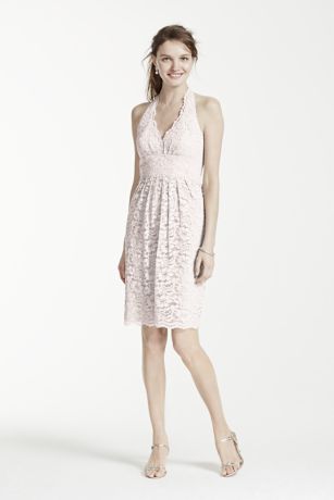 Short Halter Lace Dress David S Bridal Davids Bridal Bridesmaid Dresses Bridesmaid Dress Styles Lace Dress Styles