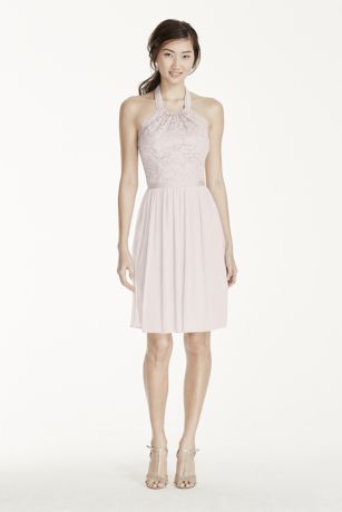 Short Lace Mesh Dress With Halter Neckline David S Bridal
